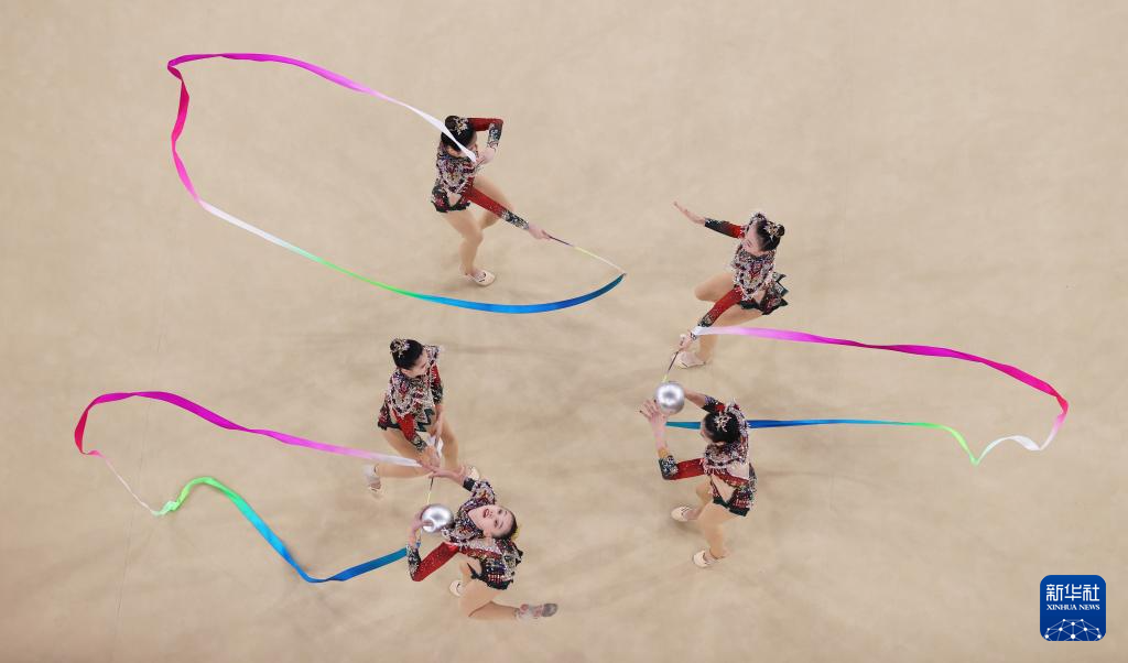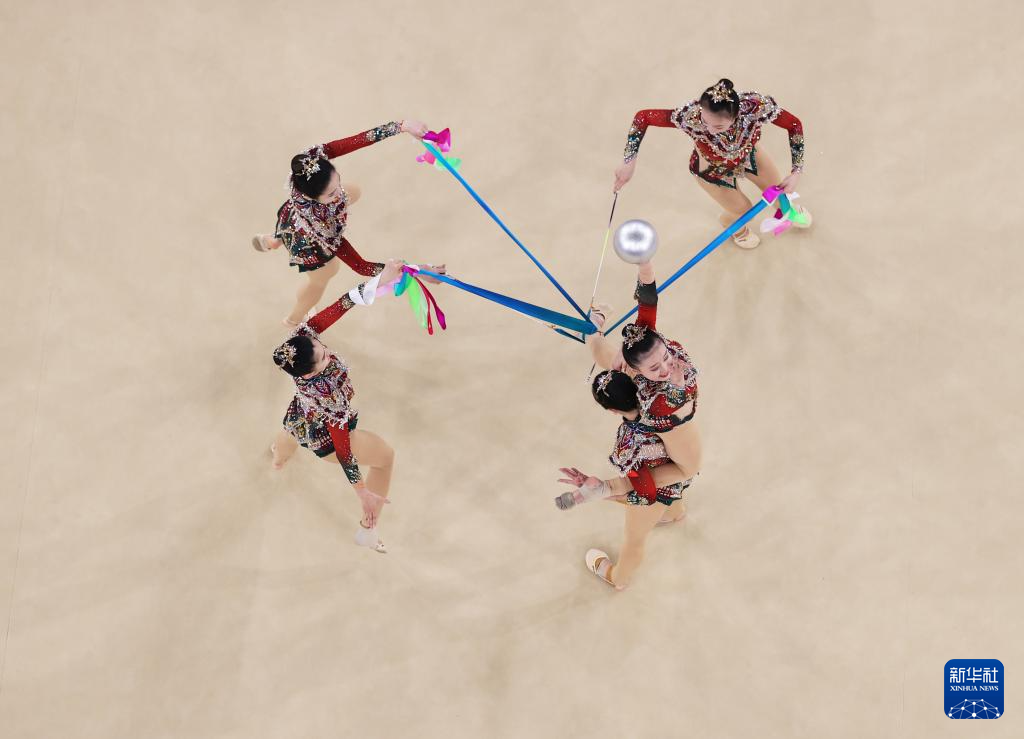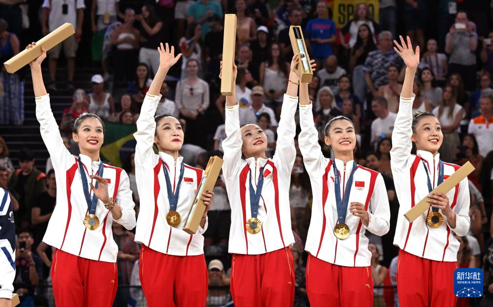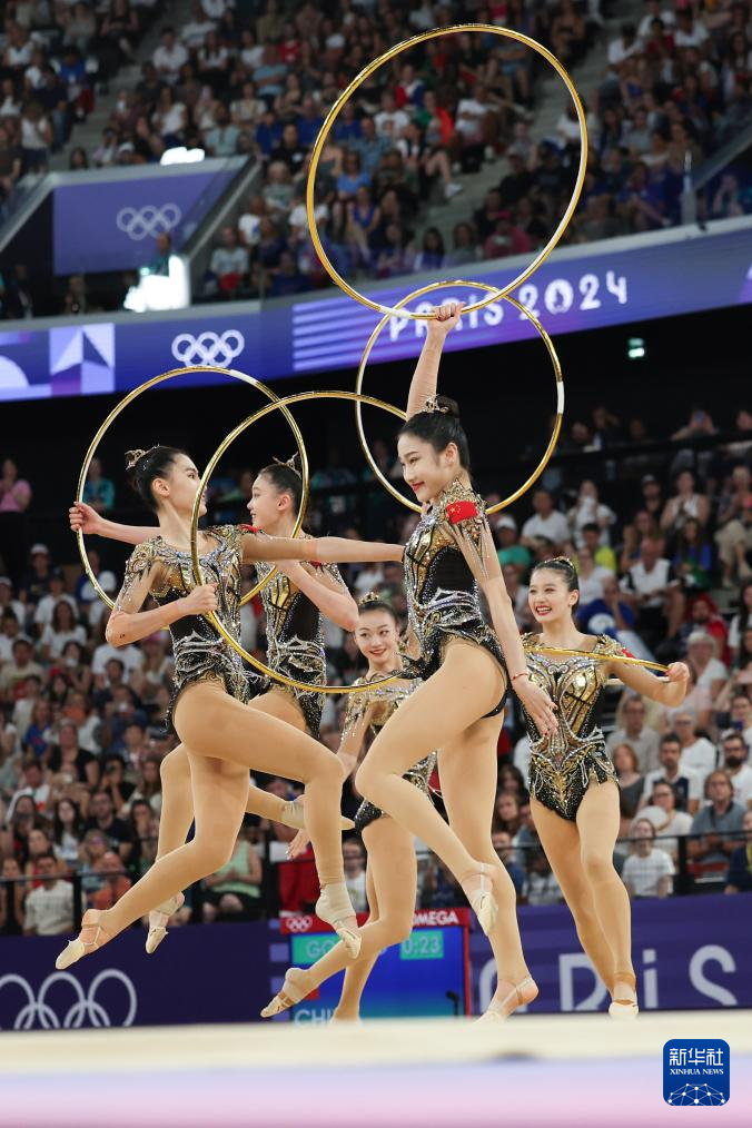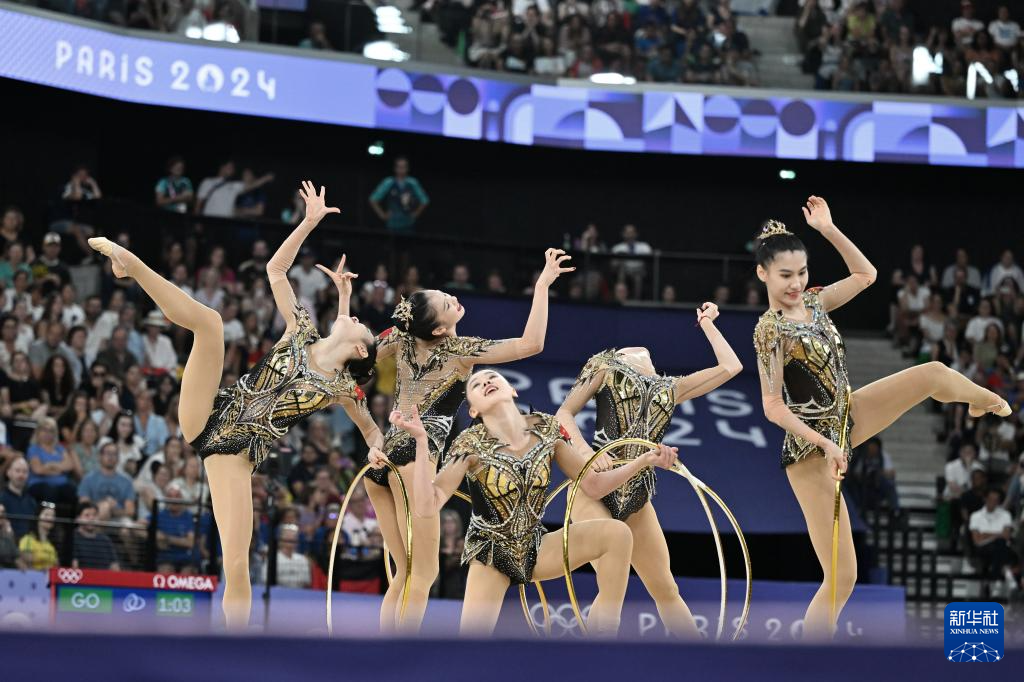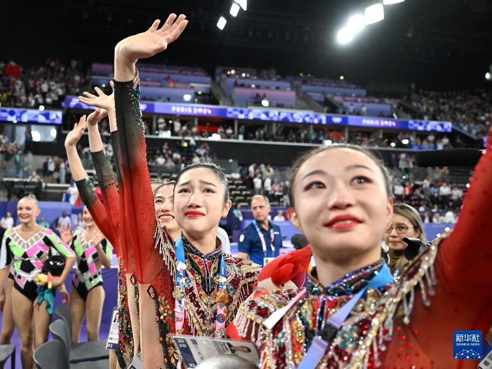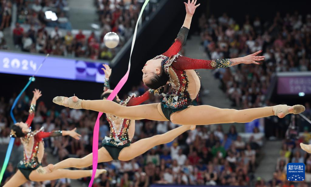 当日,在巴黎奥运会艺术体操项目集体全能决赛中,中国队获得冠军。