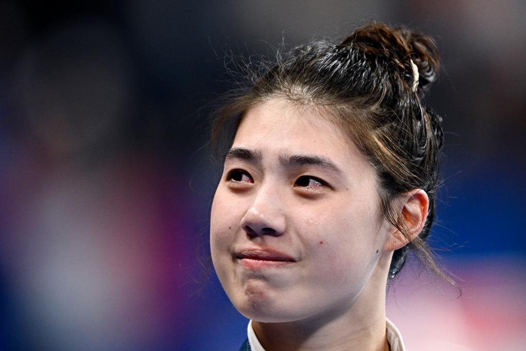 7月28日,中国选手张雨霏在赛后落泪。新华社记者 王鹏 摄