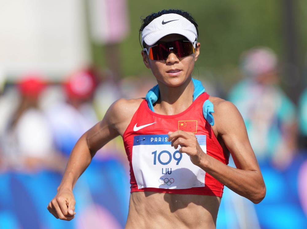 8月1日,中国选手刘虹在女子20公里竞走比赛中。她最终位列第21名。新华社记者 李京 摄