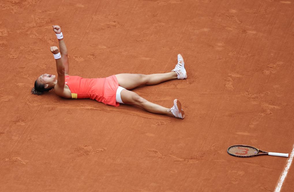 在巴黎的高温天气里,郑钦文在决赛中直落两盘击败克罗地亚选手维基奇。胜利的那一刻,她躺在红土上高举双拳呐喊,皮肤黝黑的她几乎与红土融为一体。人们无不为她充满阳光的肤色、充满力量的肌肉线条以及每球必争的信念折服。