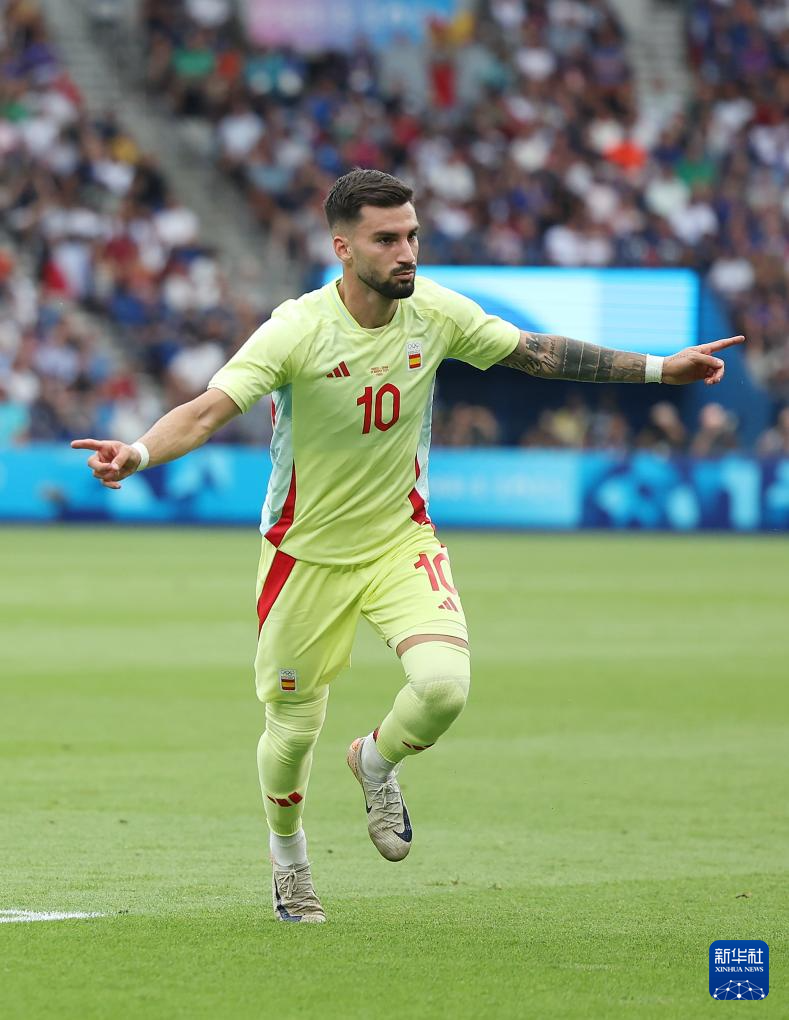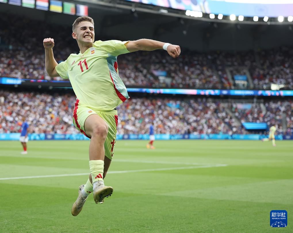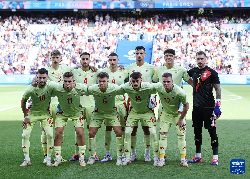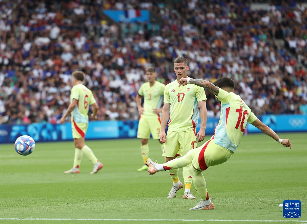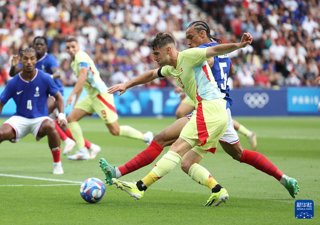 当日,在法国巴黎王子公园体育场进行的巴黎奥运会男子足球决赛中,西班牙队对阵法国队。
