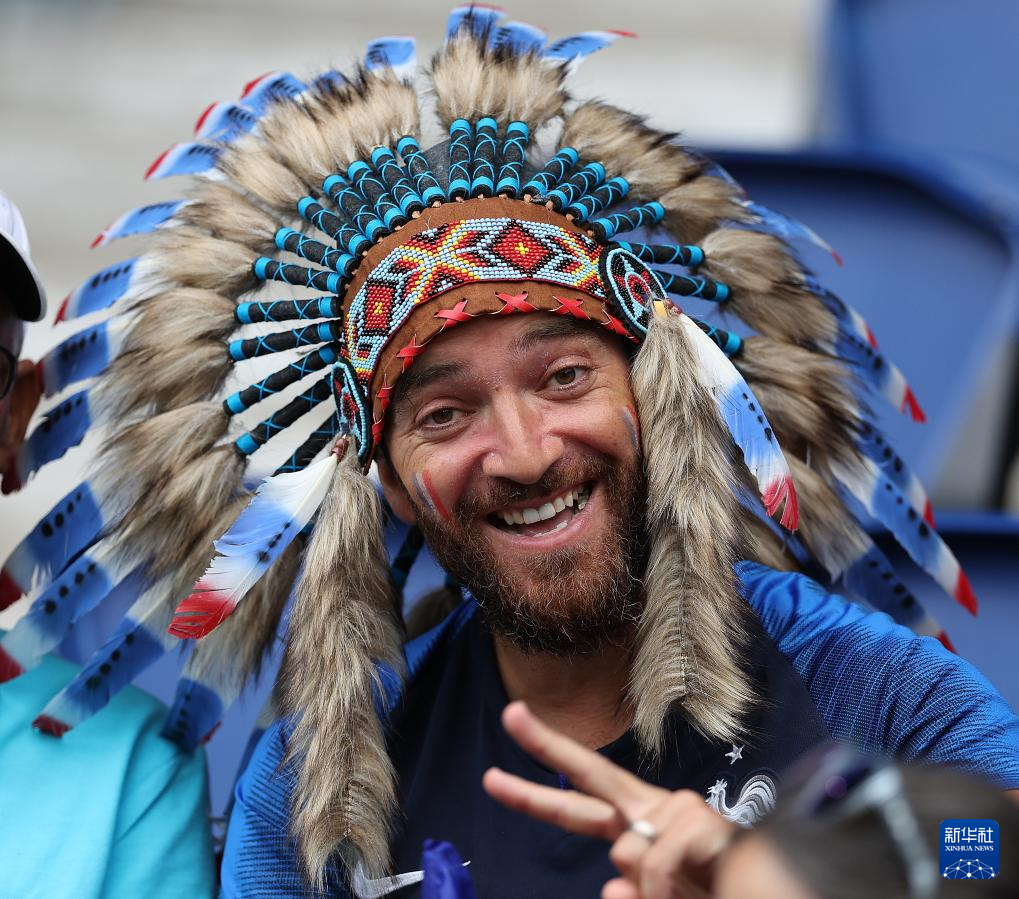 8月9日,法国球迷在比赛前。新华社记者 贾浩成 摄