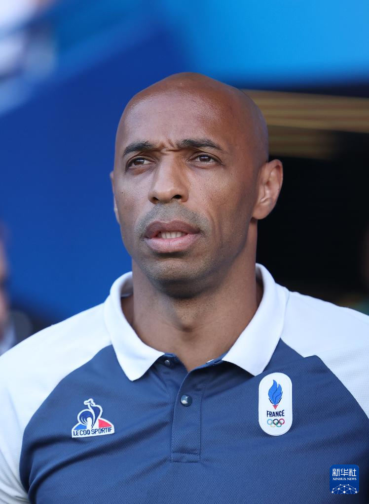 8月9日,法国队主教练亨利在比赛前。新华社记者 曹灿 摄