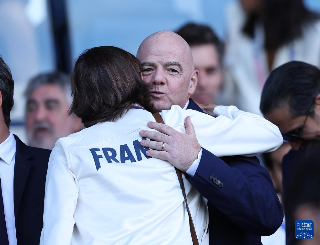 8月9日,国际足联主席因凡蒂诺(右)在比赛前。新华社记者 贾浩成 摄