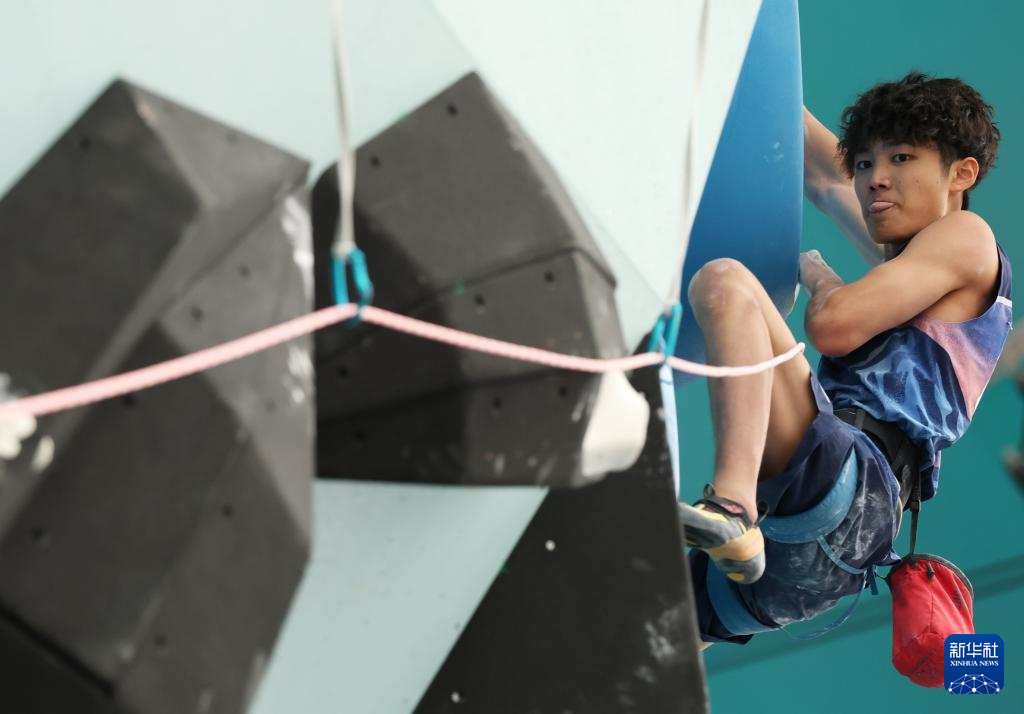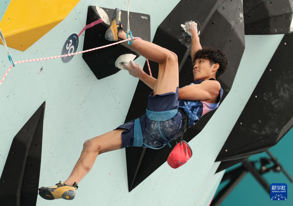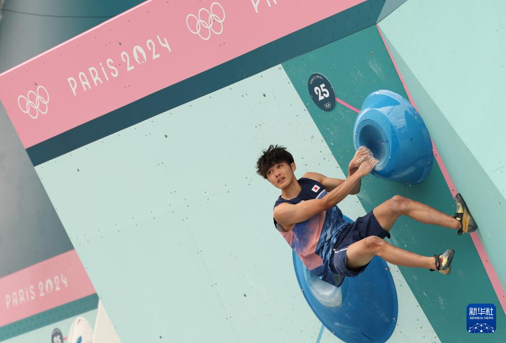 8月9日,日本选手安乐宙斗在攀石赛中。新华社记者 高静 摄