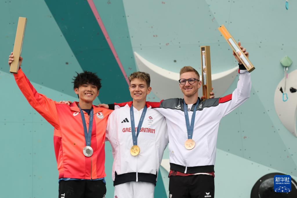 当日,在巴黎奥运会攀岩项目男子全能决赛中,英国选手托比·罗伯茨夺冠,日本选手安乐宙斗和奥地利选手雅各布·舒伯特分获亚军、季军。