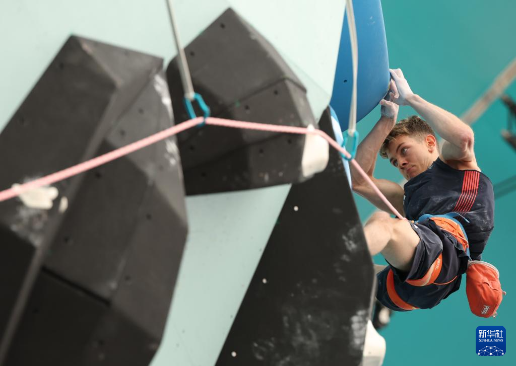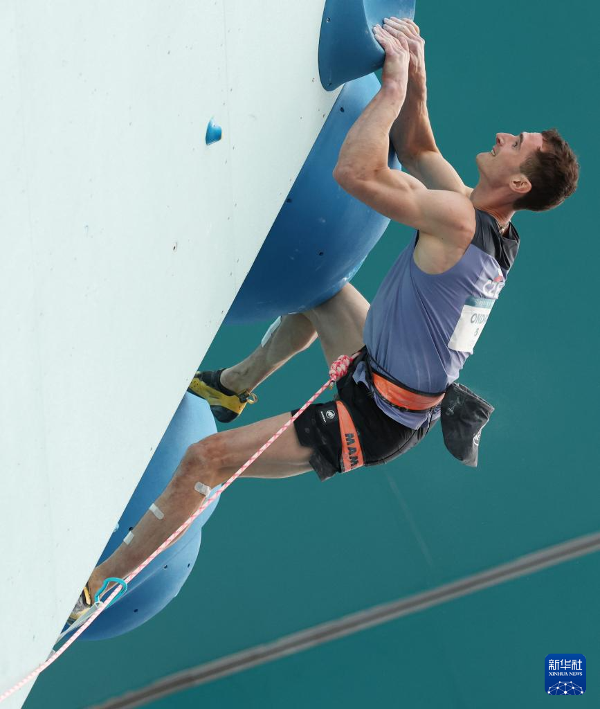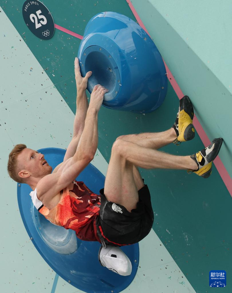 8月9日,奥地利选手雅各布·舒伯特在攀石赛中。新华社记者 高静 摄