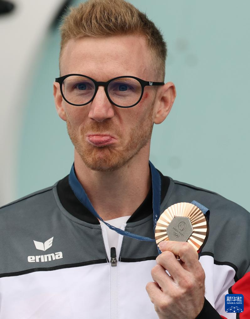 8月9日,奥地利选手雅各布·舒伯特在颁奖仪式上。新华社记者 高静 摄