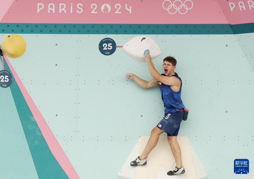 8月9日,美国选手科林·达菲在攀石赛中,他最终位列第四。新华社记者 高静 摄