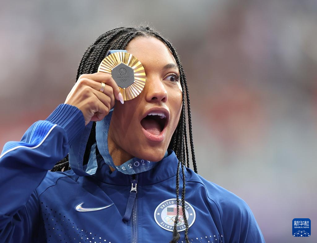 当日,巴黎奥运会田径女子跳远颁奖仪式在法兰西体育场举行。