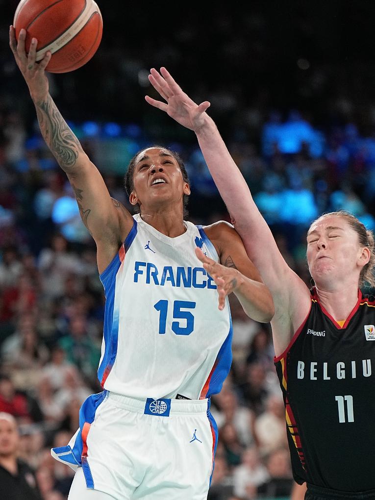 8月9日,法国女篮球员威廉姆斯(左)在半决赛中上篮。新华社记者 孟永民 摄