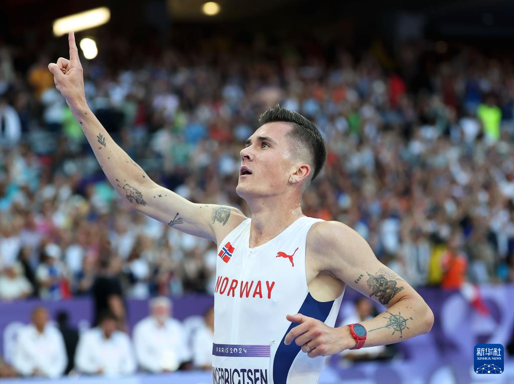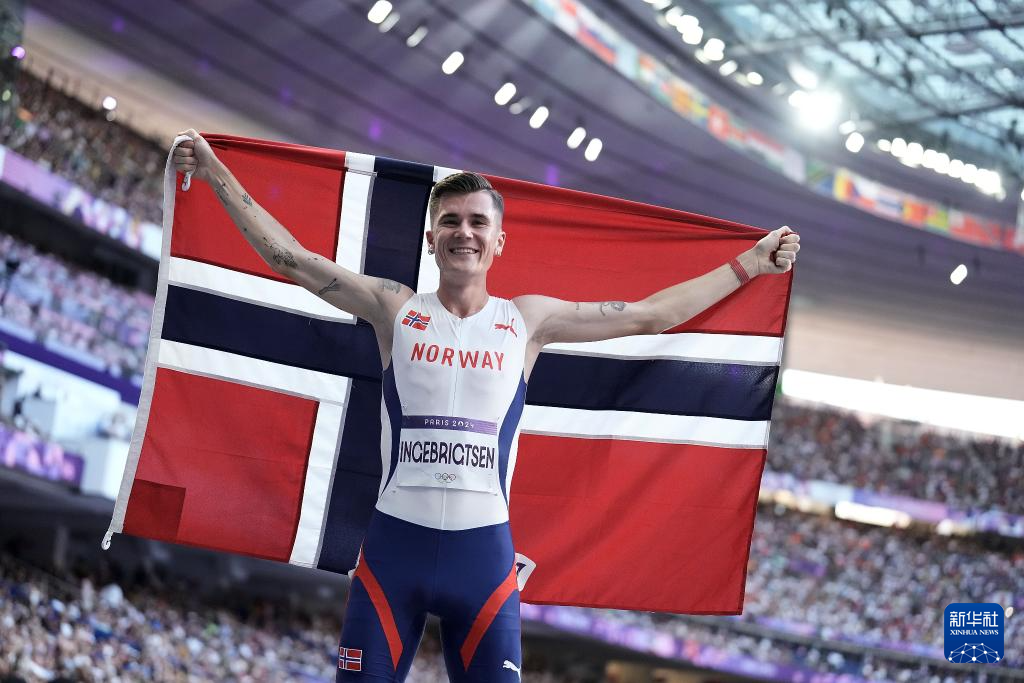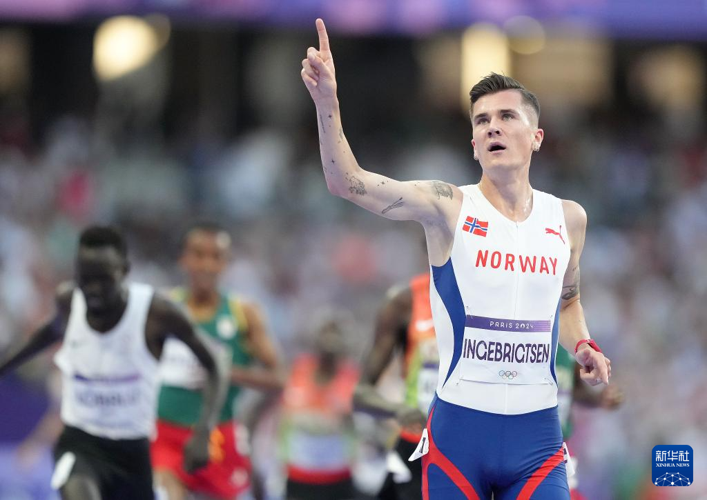 8月10日,冠军挪威选手因格布莱特森赛后庆祝。