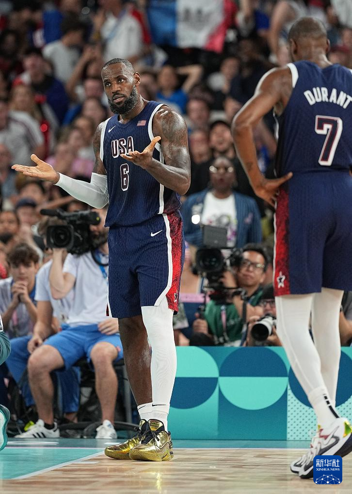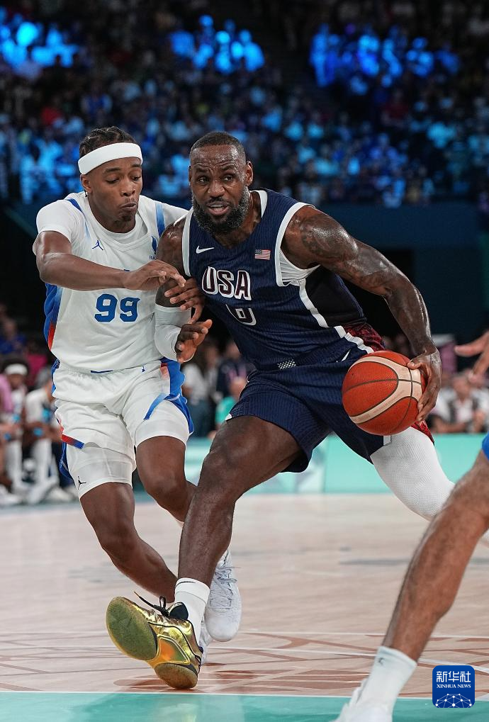 8月10日,美国队球员詹姆斯(右)在比赛中。