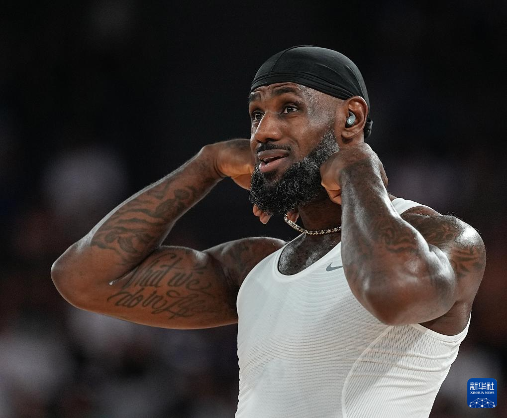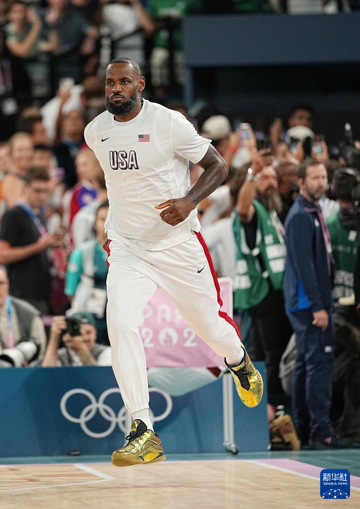 8月10日,美国队球员詹姆斯在比赛中入场。