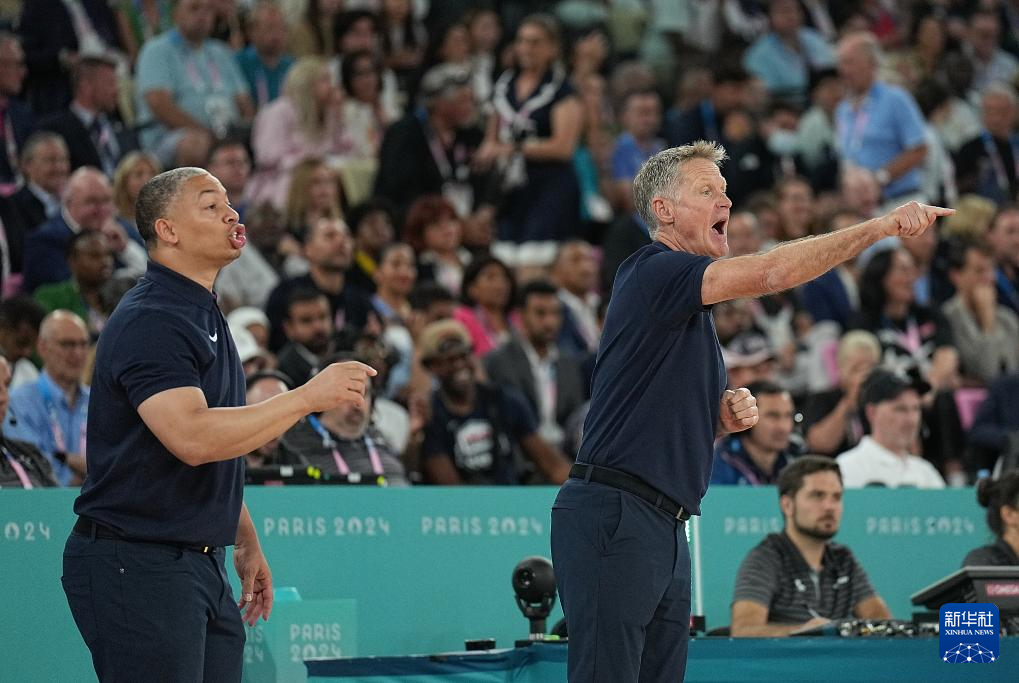 8月10日,美国队主教练科尔(右)在场边指挥。