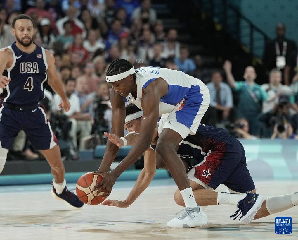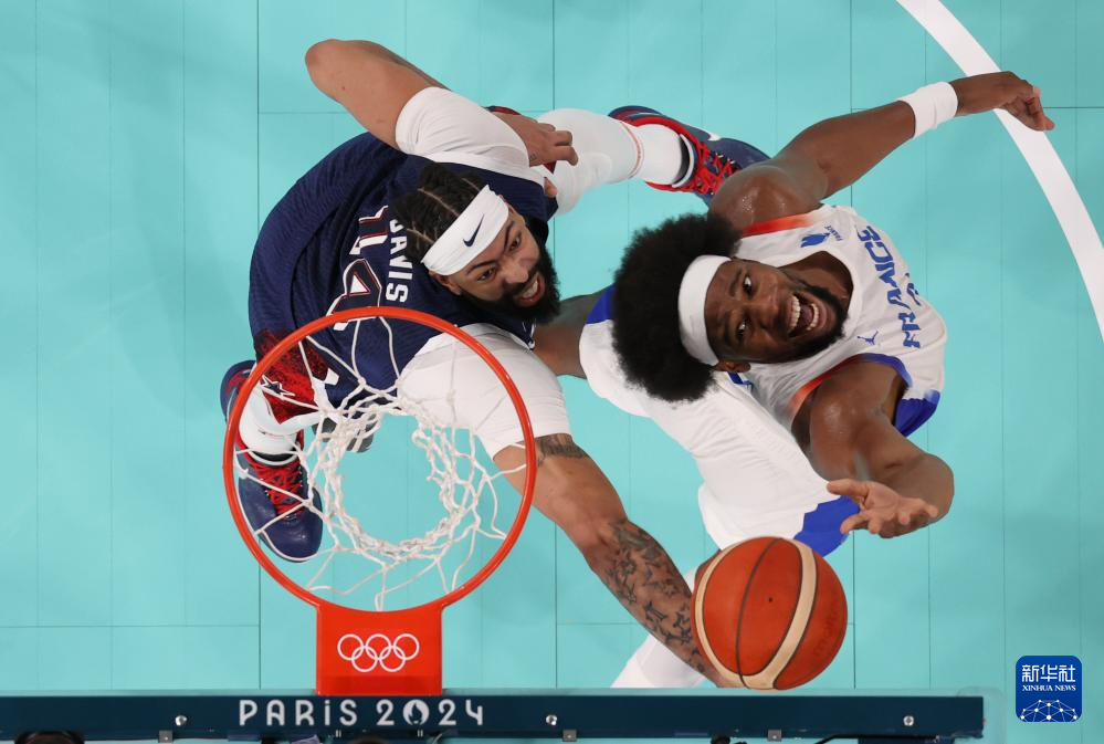 8月10日,法国队球员文班亚马在比赛中拼抢。