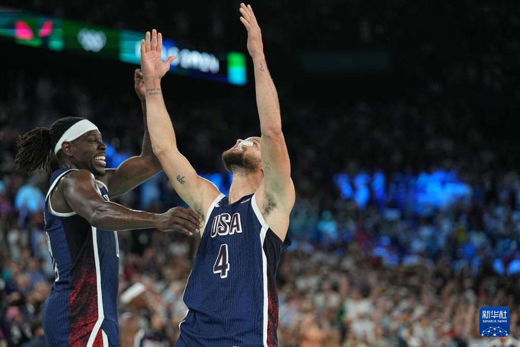 当日,在巴黎奥运会男子篮球决赛中,美国队98比87战胜法国队,获得冠军。