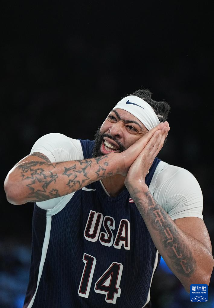 8月10日,美国队球员安东尼(右二)在比赛中。