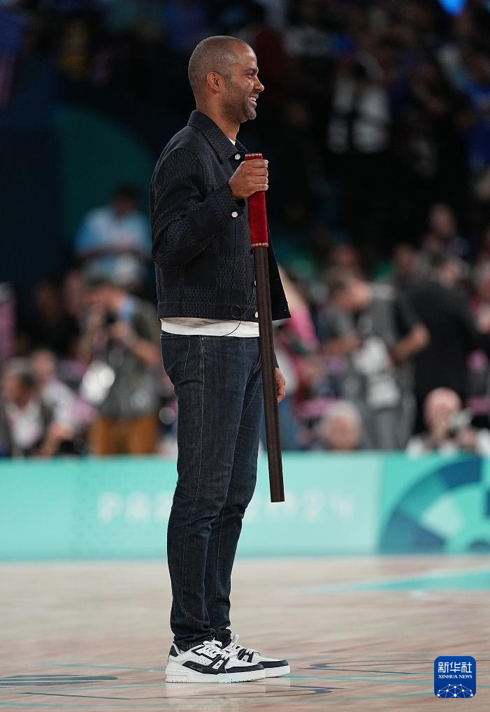 8月10日,法国球星托尼·帕克进行“三击”开赛仪式。