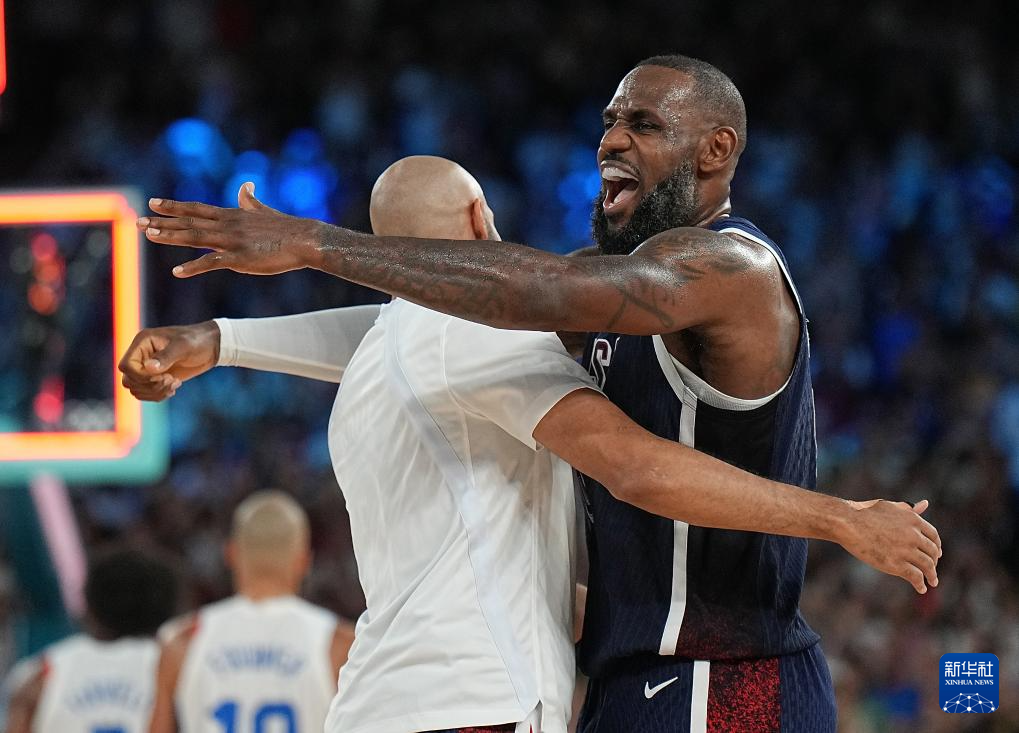 8月10日,美国队球员詹姆斯庆祝获胜。