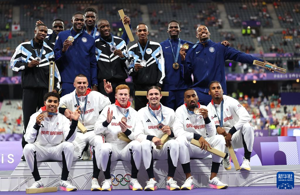巴黎奥运会丨田径——男子4X400米接力颁奖仪式举行_2024巴黎奥运会_新华网
