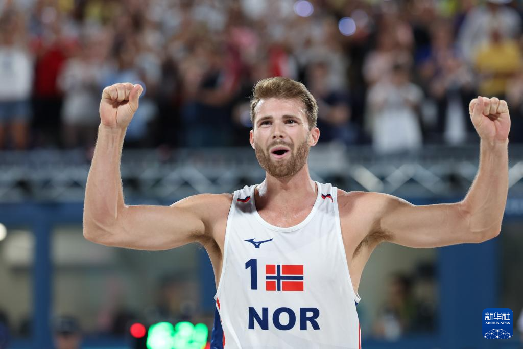 8月10日,挪威组合安德斯·莫尔在获胜后向观众致意。