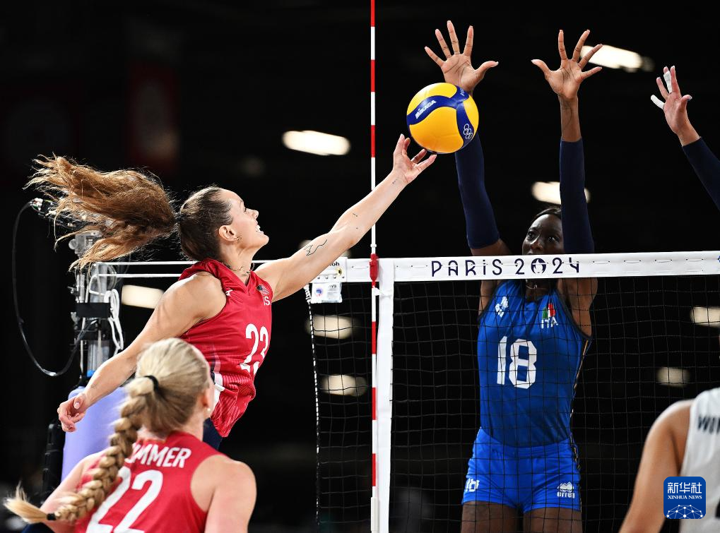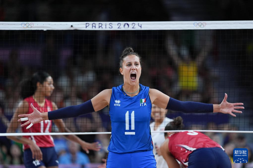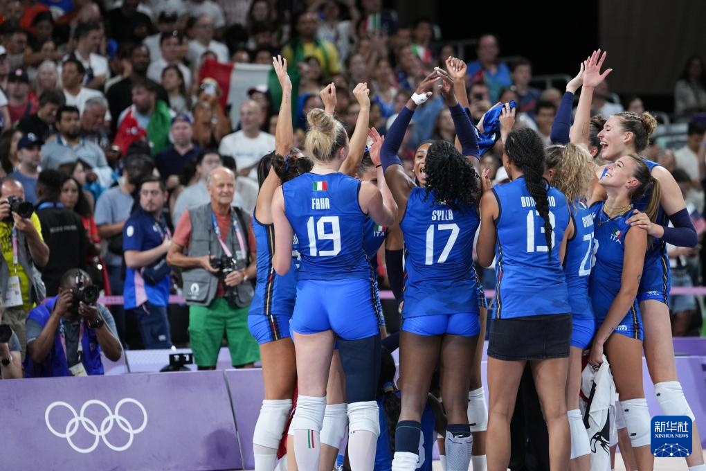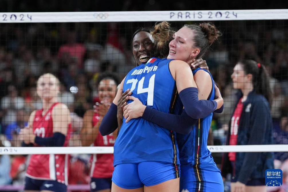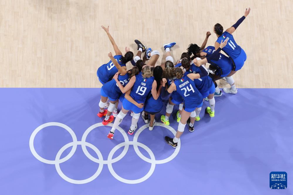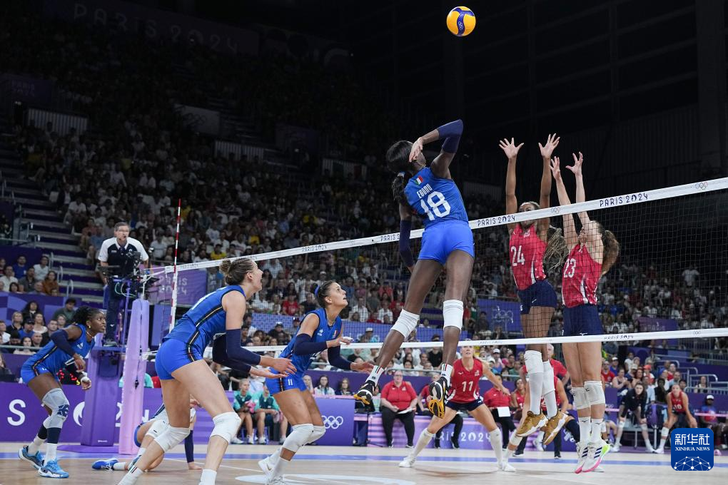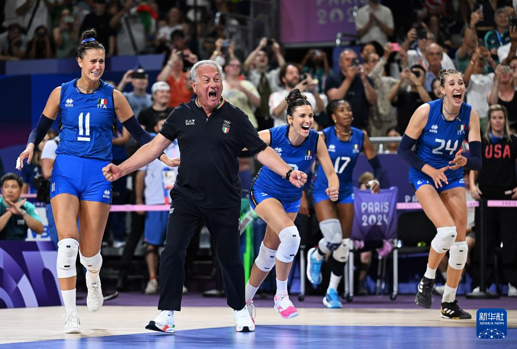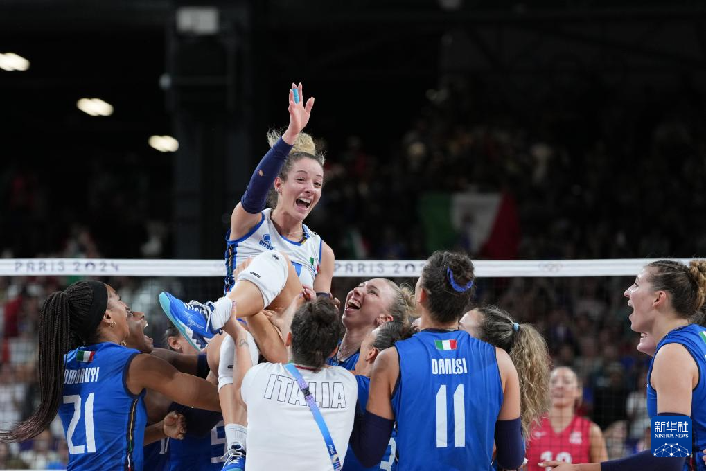 当日,在巴黎奥运会女子排球决赛中,意大利队3比0战胜美国队,夺得冠军。