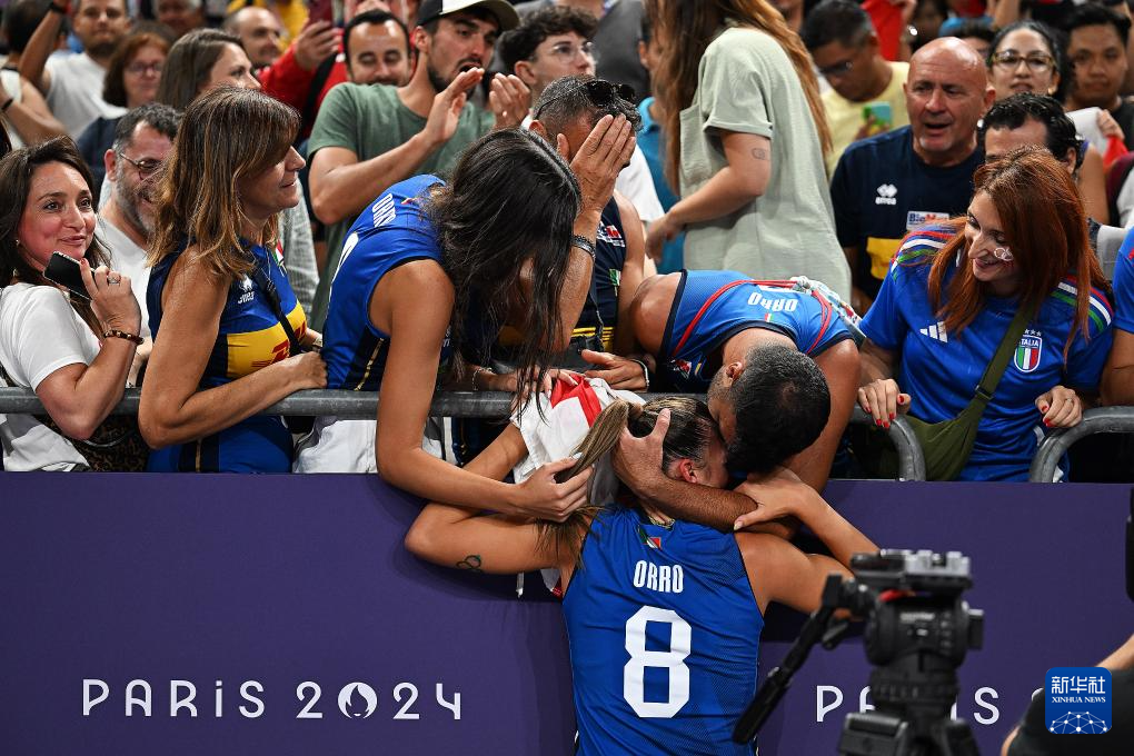 8月11日,意大利队球员奥勒夺冠后和家人庆祝。