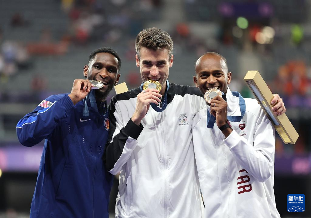 巴黎奥运会丨田径——男子跳高颁奖仪式举行_2024巴黎奥运会_新华网