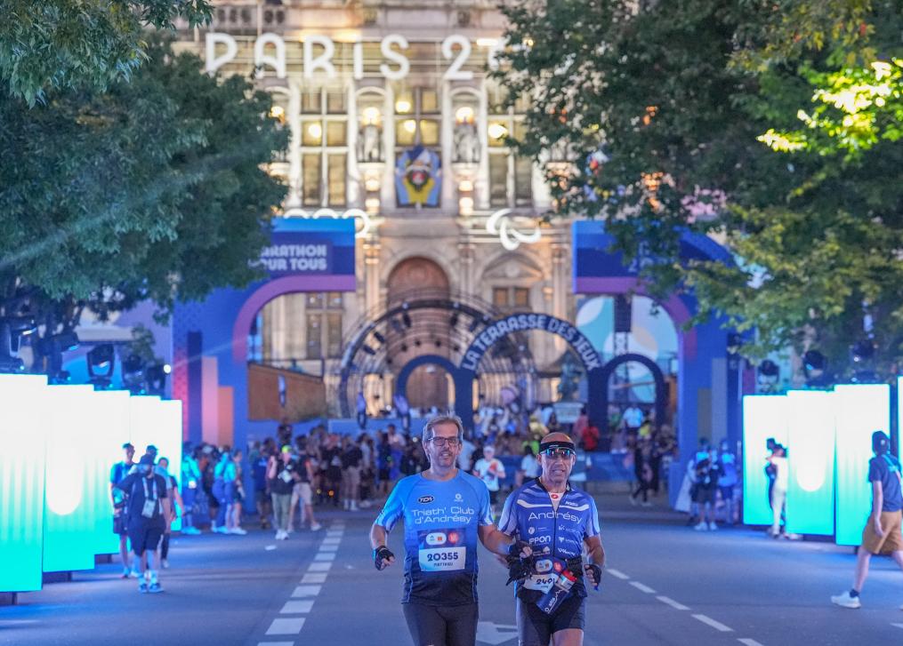 候场时,记者身旁的几位法国人一边用手机刷着当晚法国队与美国队的男篮决赛,一边跟随马拉松赛道上的领操员进行热身。好几个人都对记者说,感觉自己像奥运选手一样。奥运期间,整个法国,人们谈论的几乎都是奥运,就连记者所住酒店的前台工作人员,都开始问中国队为什么实力如此之强。