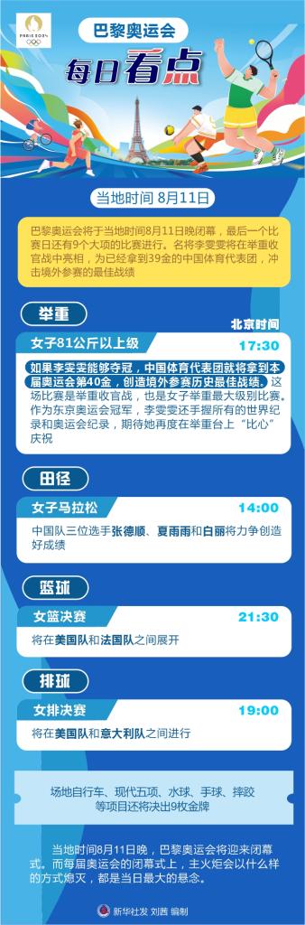 (图表)巴黎奥运会|巴黎奥运会每日看点(8月11日)_2024巴黎奥运会_新华网