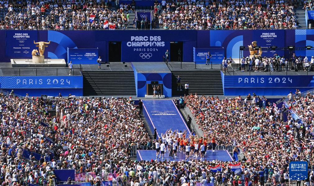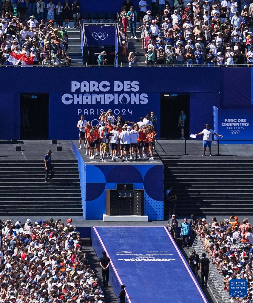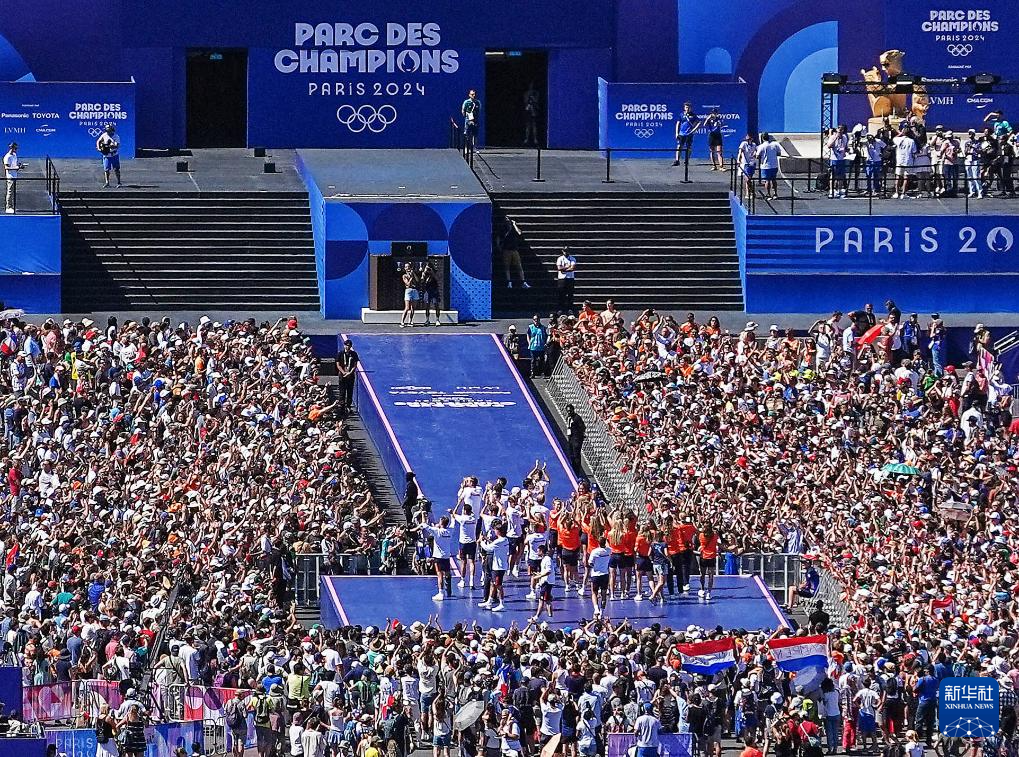 当日,观众来到位于巴黎特罗卡德罗广场的冠军公园,与奥运奖牌获得者分享荣耀。
