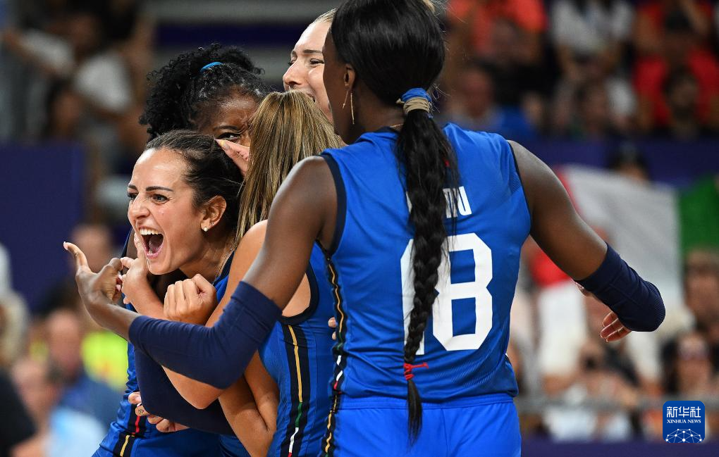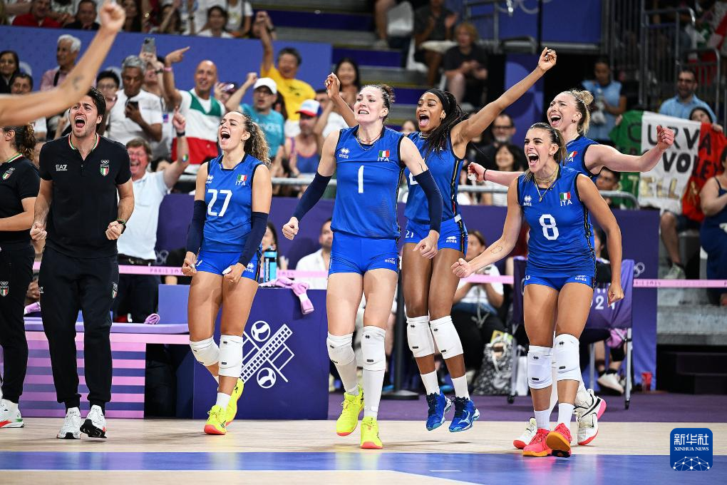 当日,在巴黎奥运会排球女子决赛中,意大利队3比0战胜美国队,获得冠军。