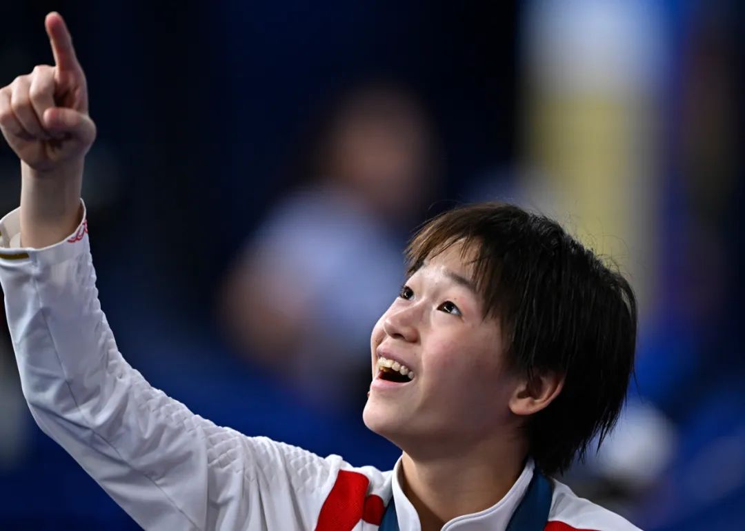 8月6日,全红婵在颁奖仪式后。新华社记者 王鹏 摄
