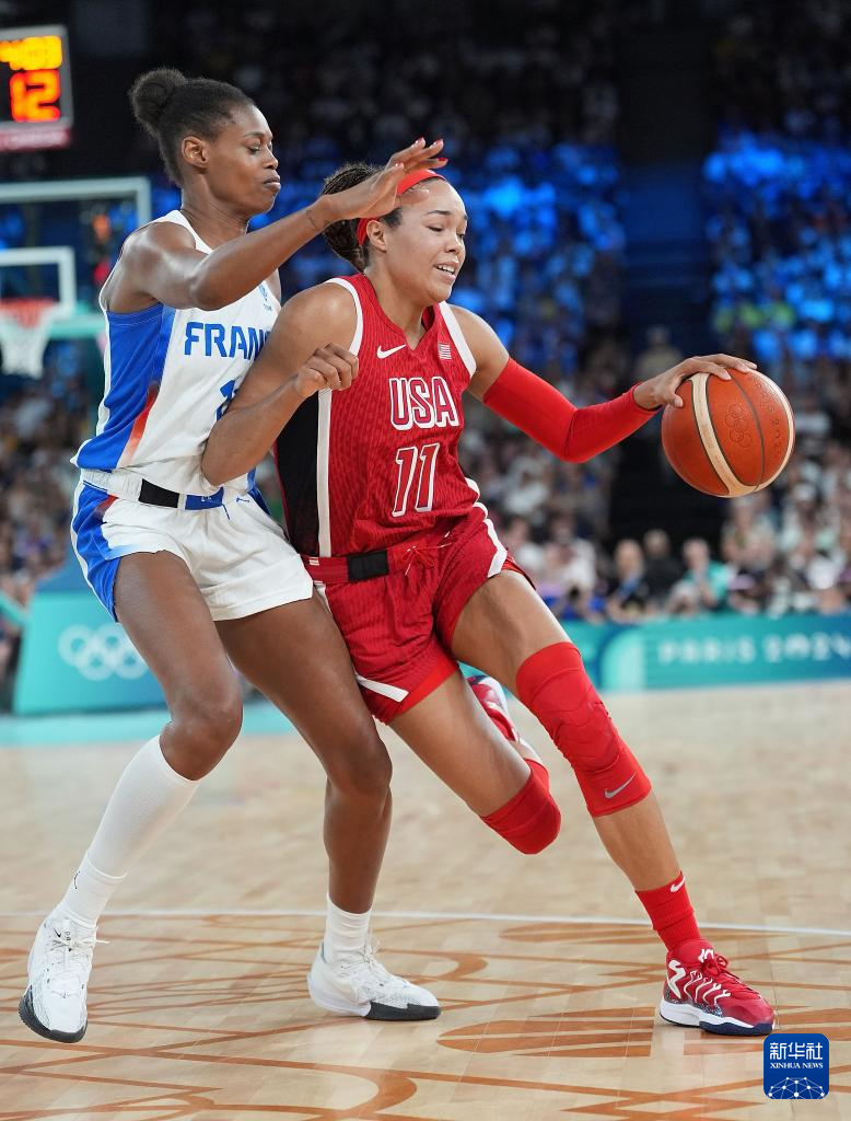当日,在巴黎奥运会女子篮球决赛中,美国队67比66战胜法国队,获得冠军。