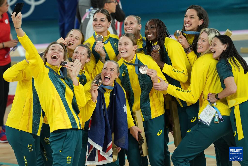 8月11日,季军澳大利亚队在颁奖仪式后合影。