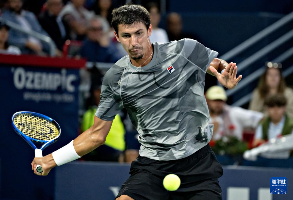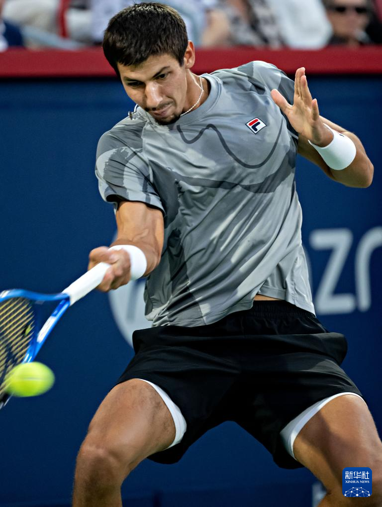 8月12日,波佩林在比赛中回球。新华社发(宋伟仁摄)