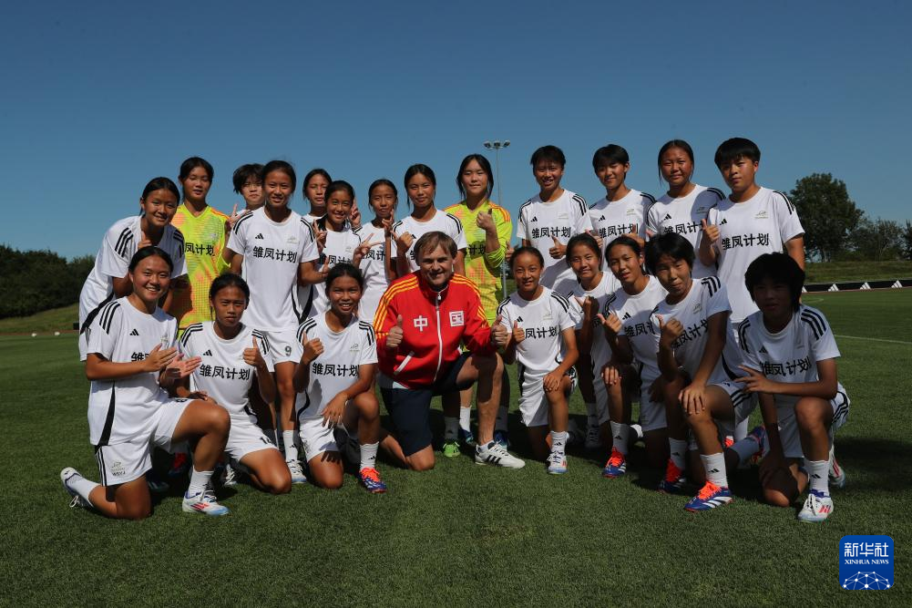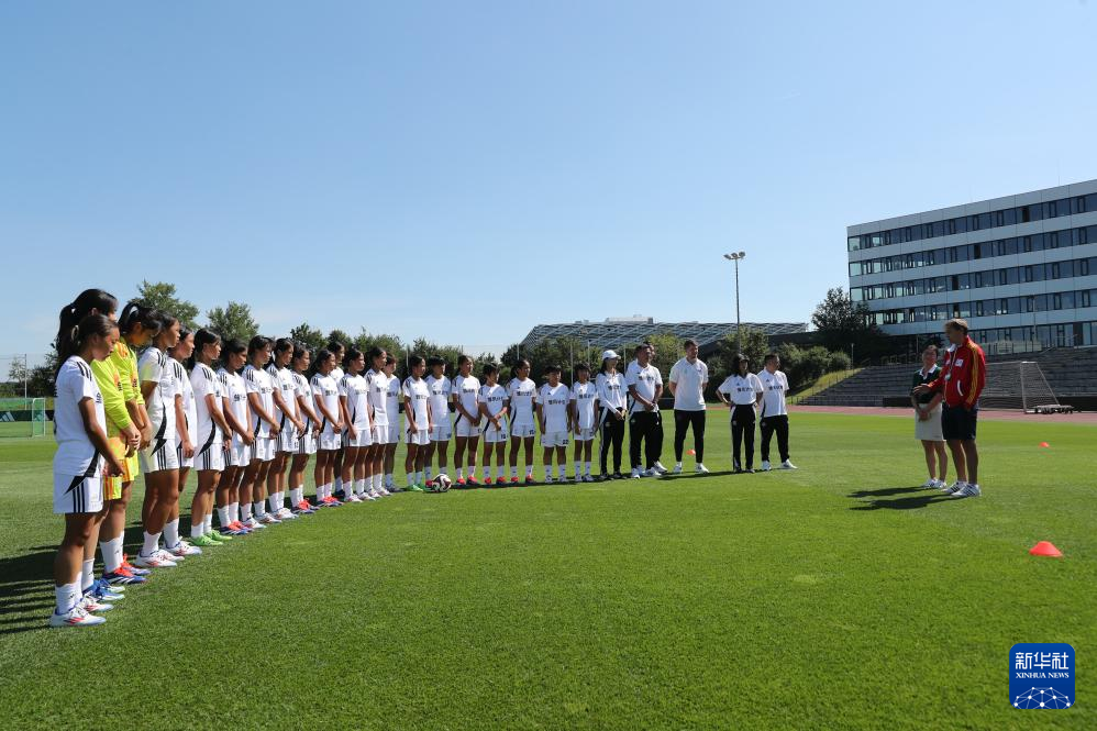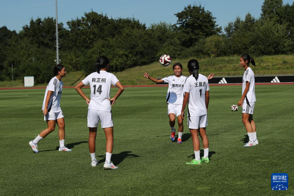 8月12日,在德国黑措根奥拉赫,“雏凤计划”女足小球员在训练中。新华社记者 杜哲宇 摄