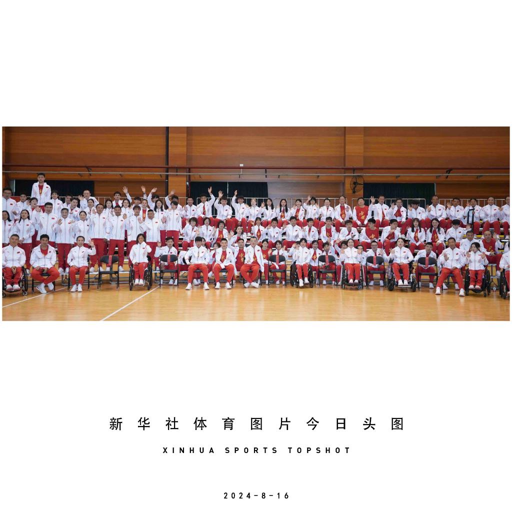 8月16日,巴黎残奥会中国体育代表团成员在成立仪式上合影。