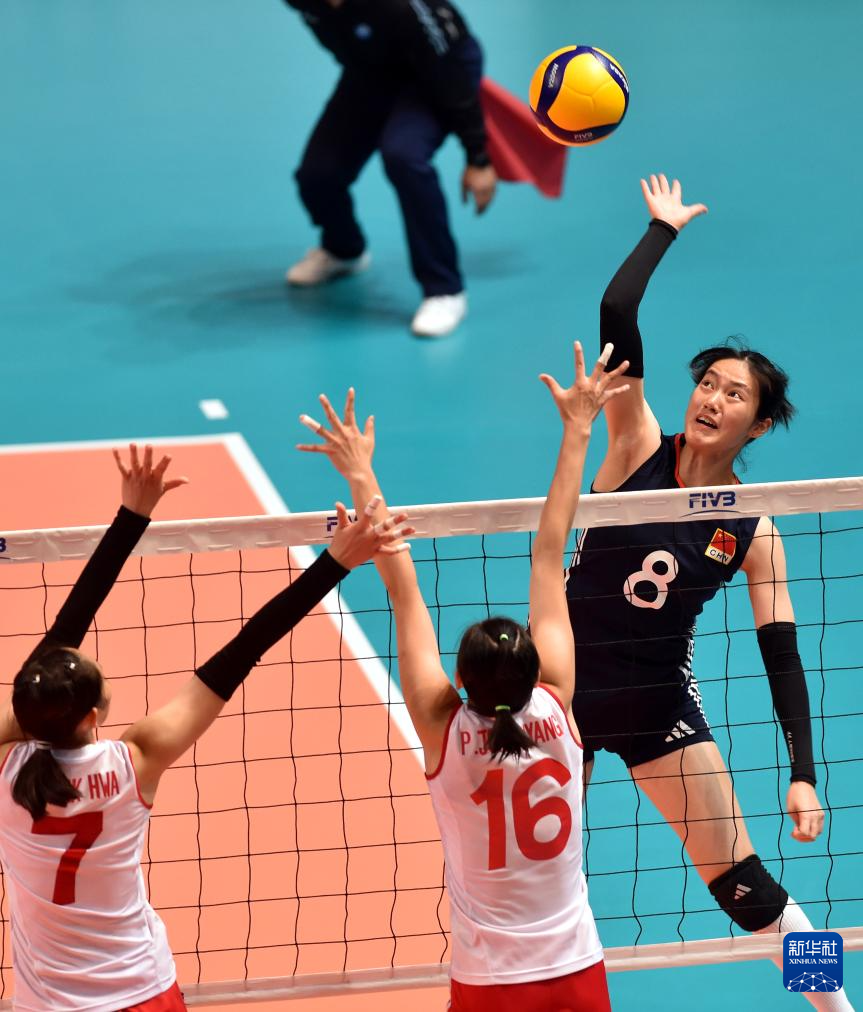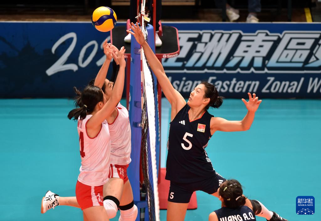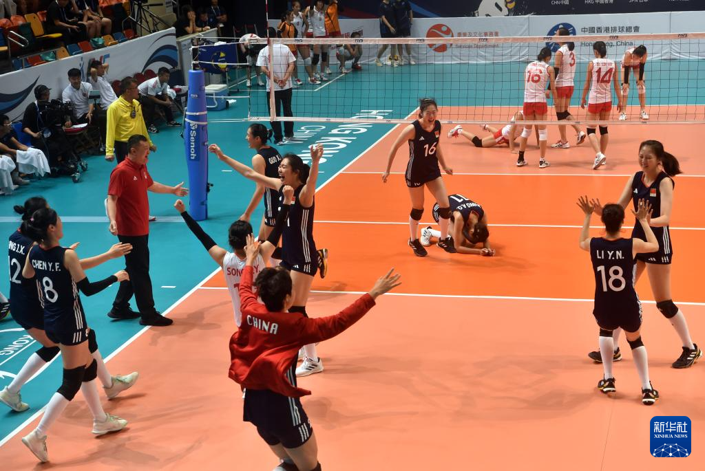 当日,在香港伊利沙伯体育馆举行的2024亚洲东区女子排球锦标赛半决赛中,中国队3比2战胜朝鲜队,晋级决赛。