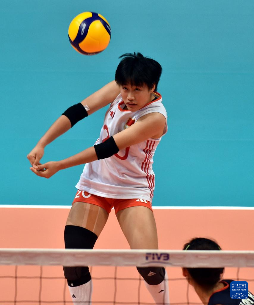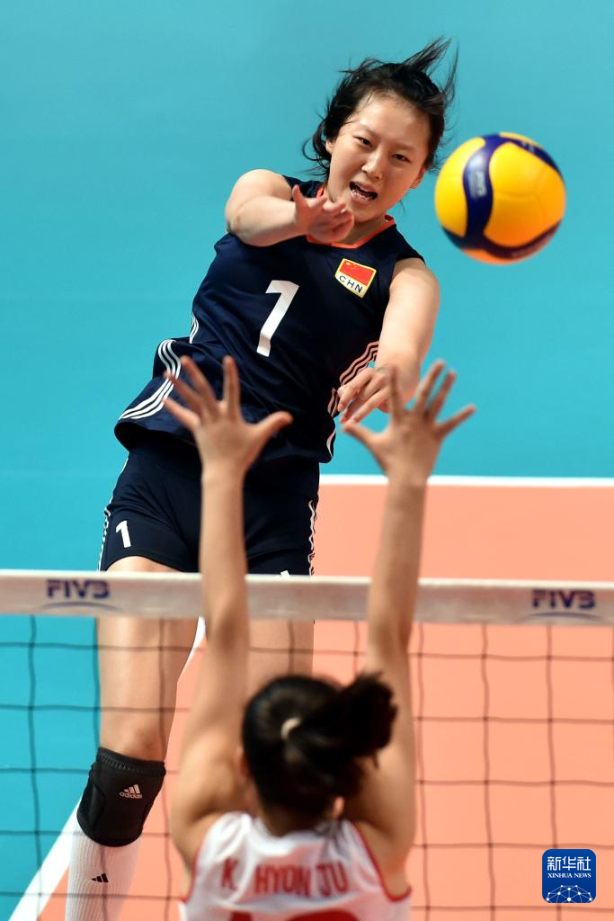 8月17日,中国队球员陈羽霏(右)在比赛中扣球。新华社记者 卢炳辉 摄