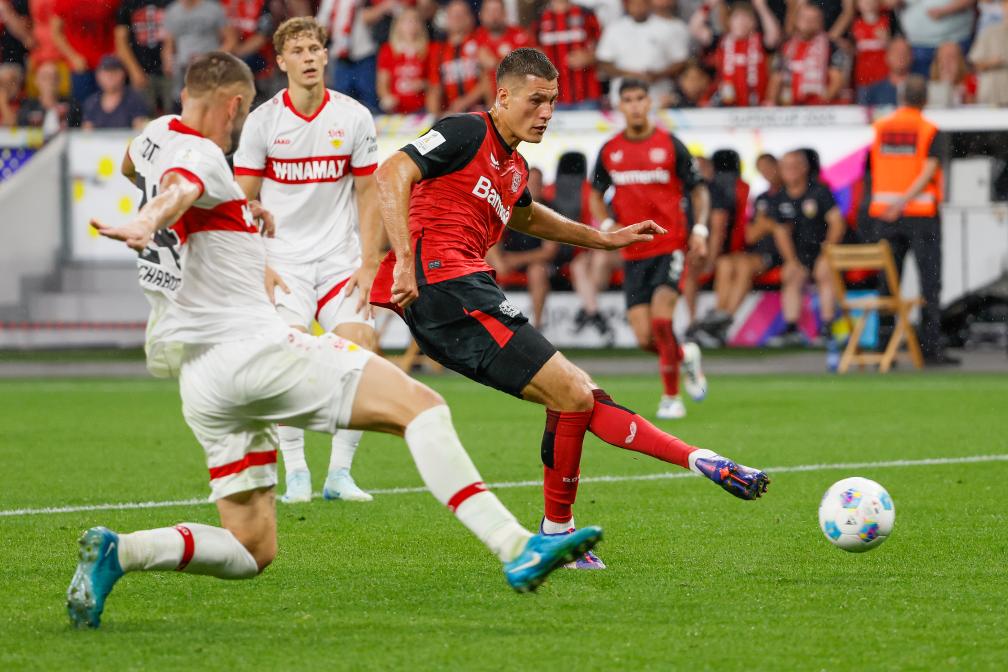 开场第11分钟,博尼费斯为勒沃库森首开记录。四分钟后,米特尔施泰特助攻米洛,为斯图加特扳平比分。第37分钟,法国球员泰里耶在中场铲抢时踢到德米洛维奇脚踝,主裁判直接出示红牌将泰里耶罚下。