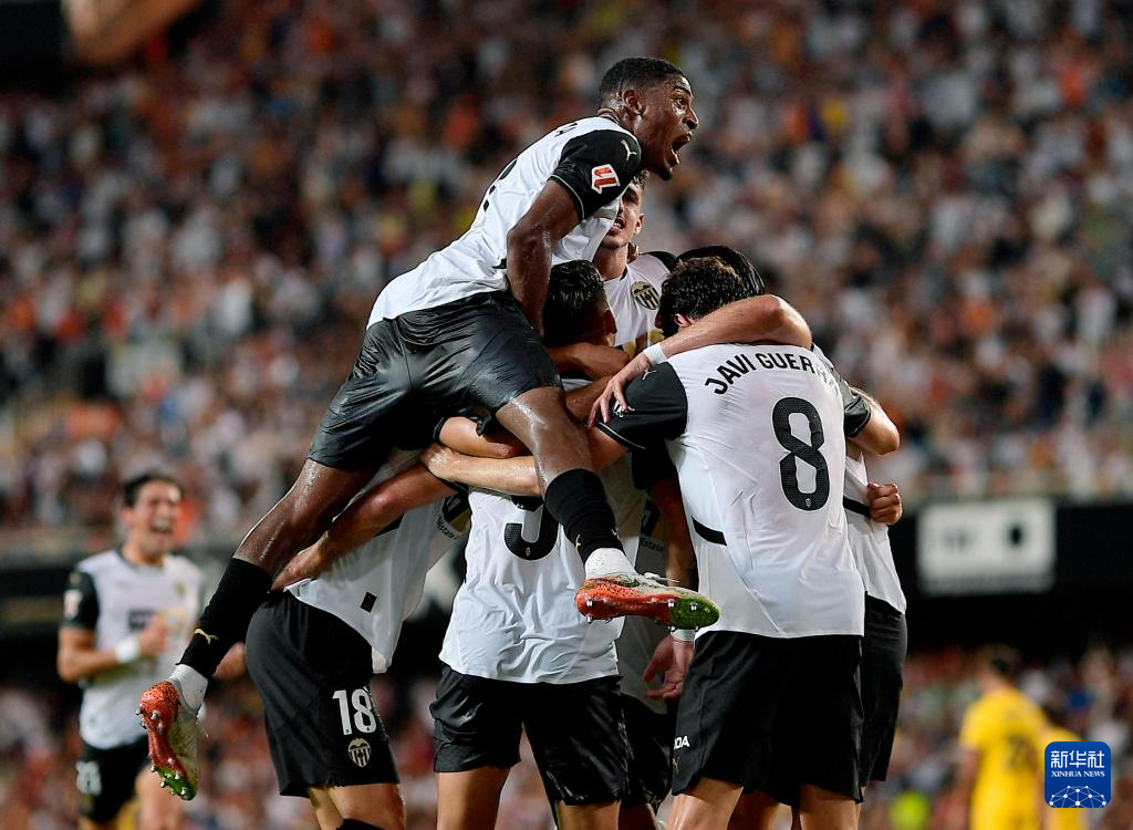 8月17日,巴伦西亚队球员庆祝进球。新华社/路透