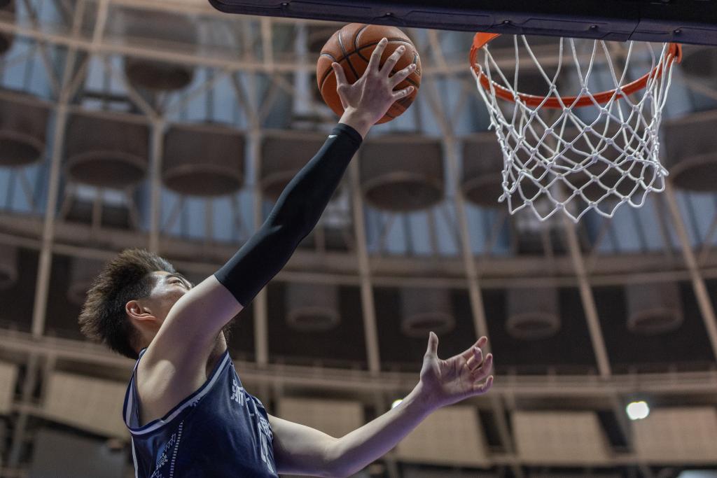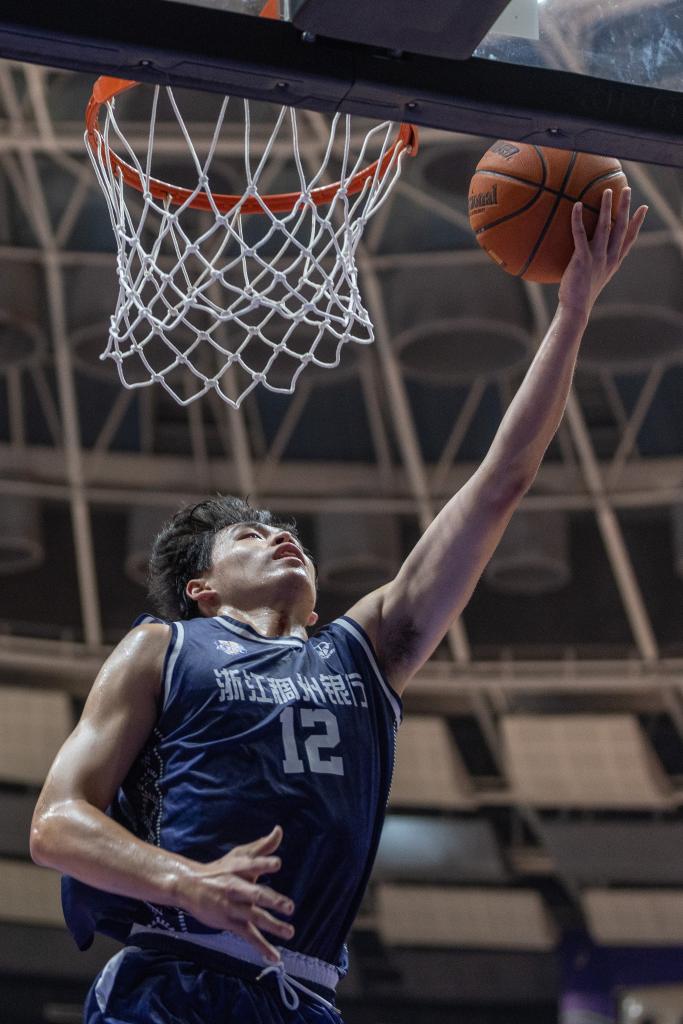8月18日,浙江稠州银行队球员张洪硕在比赛中上篮。新华社记者 黄伟 摄