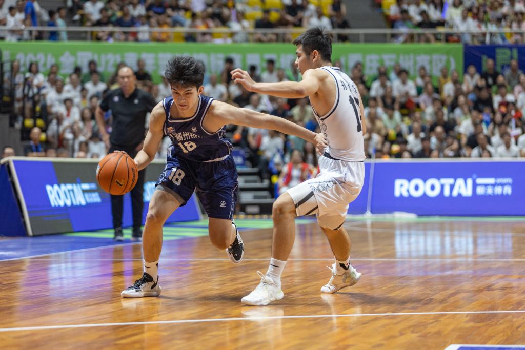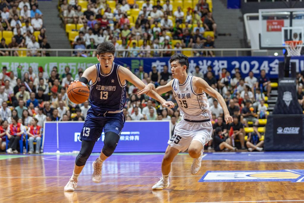 8月18日,浙江稠州银行队球员景天雨(左)在比赛中带球突破。新华社记者 黄伟 摄