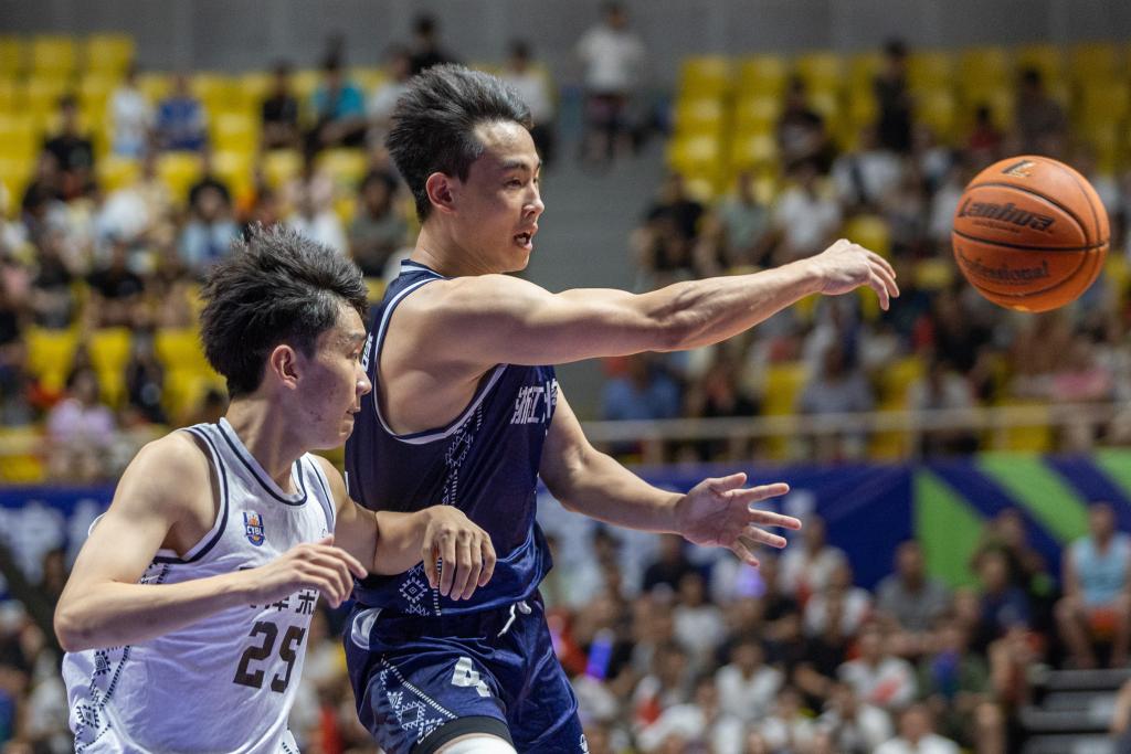 8月18日,浙江稠州银行队球员任骏哲(右)在比赛中传球。新华社记者 黄伟 摄