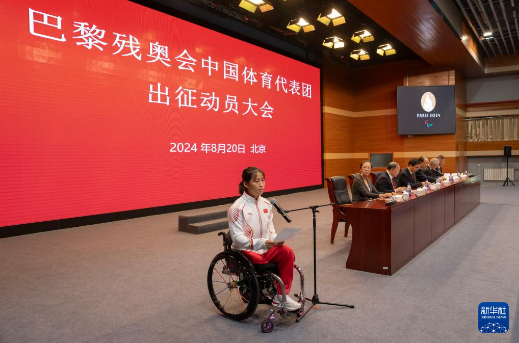 8月20日,巴黎残奥会中国体育代表团出征动员大会在北京举行。巴黎残奥会将于8月28日至9月8日在法国举行。新华社记者 才扬 摄