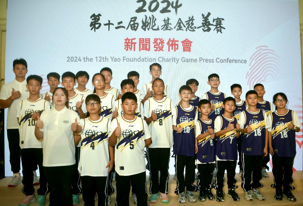 姚基金创始人、中国篮协主席姚明出席当天在香港举行的赛前发布会,并与在发布会上亮相的中外球员合影。这是姚基金慈善赛时隔七年再次在香港举行。