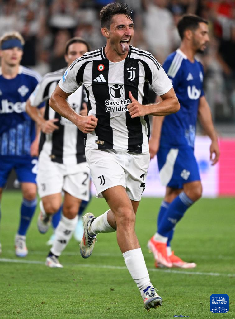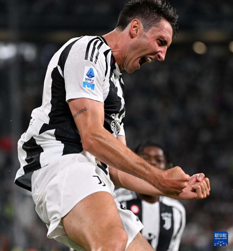 8月19日,尤文图斯队球员坎比亚索在比赛中庆祝进球。新华社发(阿尔贝托·林格利亚摄)