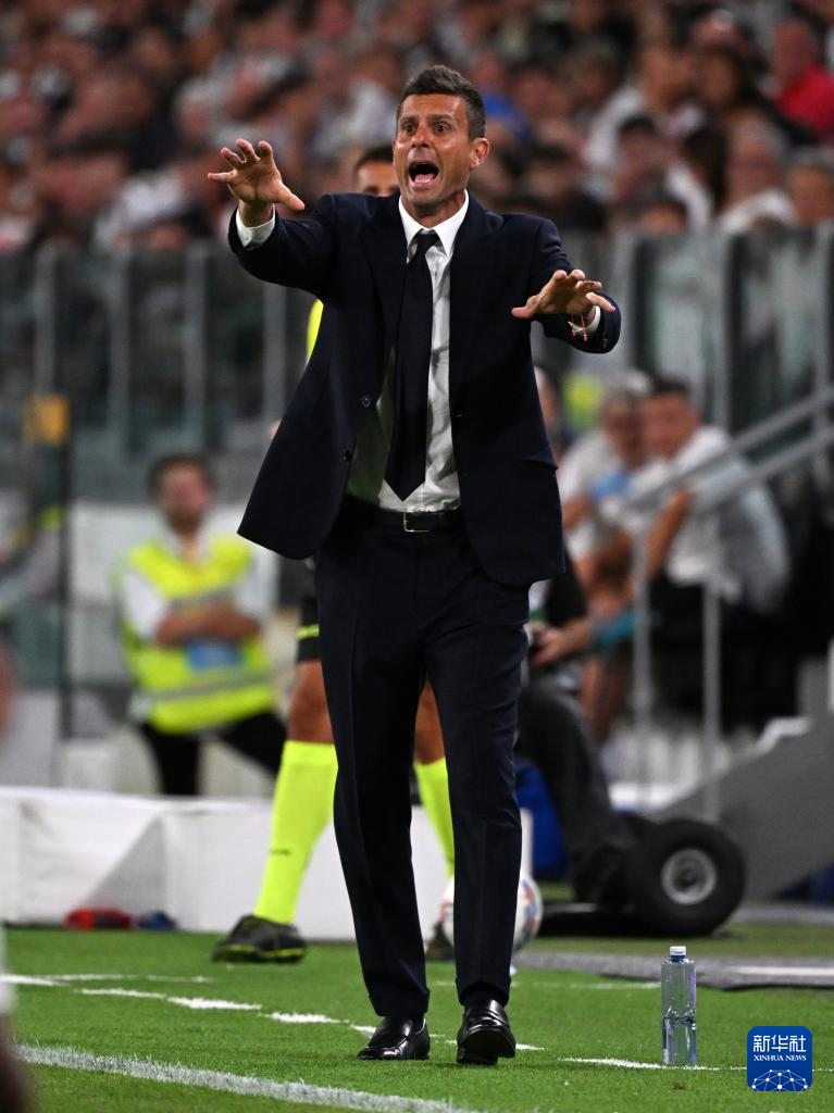 8月19日,尤文图斯队主教练莫塔在场边指挥。新华社发(阿尔贝托·林格利亚摄)